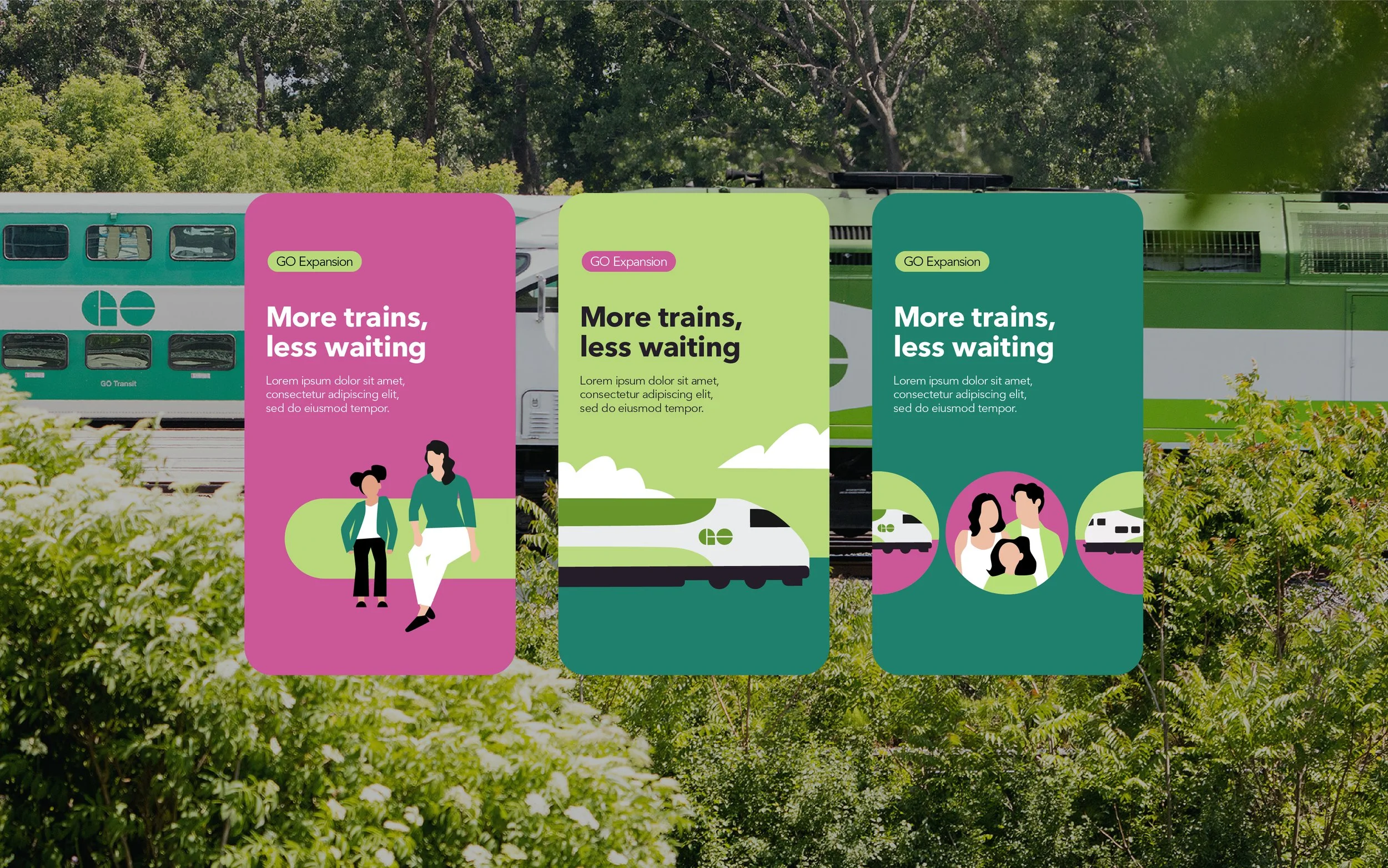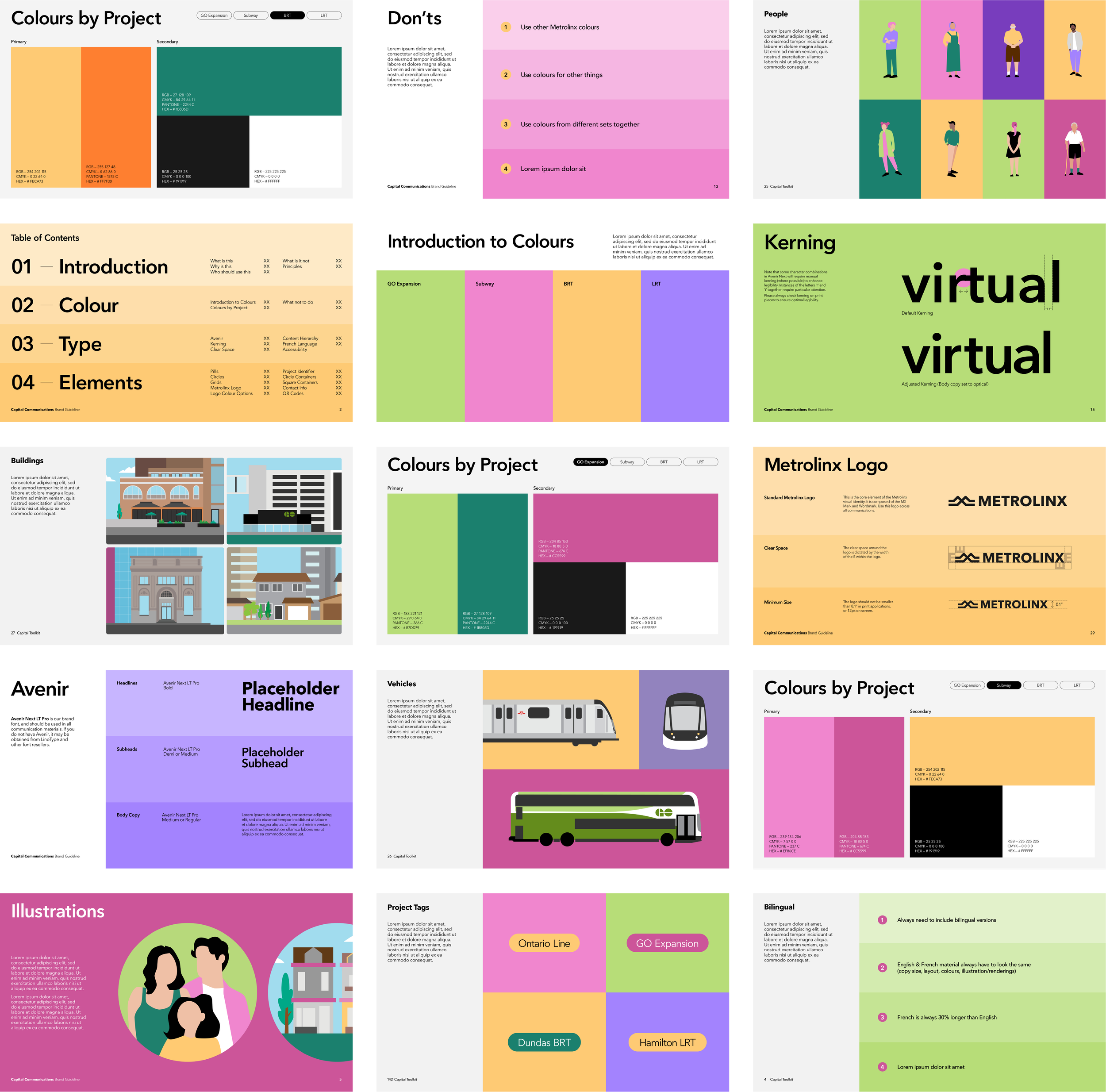 As the lead designer, I helped shape the brand identity for Metrolinx Capital Communications, bringing a fresh and energetic look to all materials — from print and social to signage and animation. The bright, colourful style captures a sense of openness and optimism, making the brand feel approachable and human. I developed the brand guidelines and have continued refining the visual system over the years, ensuring it grows and adapts while staying true to its playful, uplifting spirit.